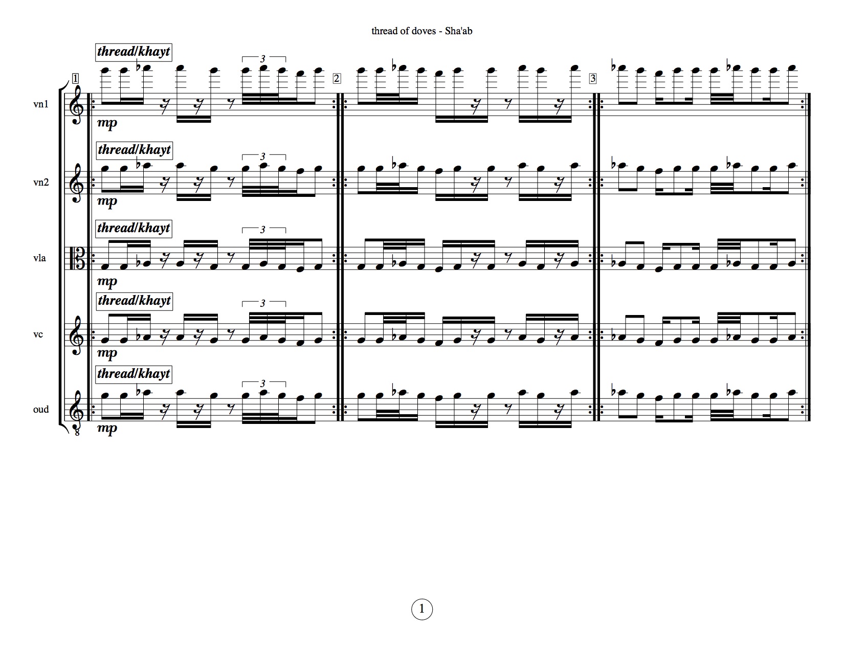 kitab3/book3 "confluence of doves - string quartet + oud continuation of an-going multi-movement set of pieces for acoustic string quartet, inspired by arabic pitch and rhythmic modal systems, begun in summer 2012, continuing to the present